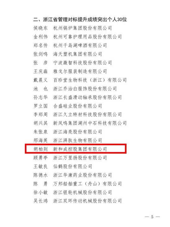 近日,浙江省经济和信息化厅公布2021年浙江省企业管理对标提升标杆企业和成绩突出个人名单。集团公司党委书记胡柏剡老师荣获“企业管理对标提升成绩突出个人”称号,这不仅是对胡柏剡老师在推进企业高质量发展方面做出突出贡献的嘉奖,也是对新和成发展成果的肯定。 助力高质量发展建设共同富裕示范区和打造全球先进制造业基地是公司的光荣使命和责任。在“老师文化”的引领下,公司始终秉承开放思想、对标学习的态度,坚持面向全球市场、整合全球资源,向优秀学习。公司与壳牌合作,引进先进的HSE管理体系,努力实现本质安全;在产业链上,与闰土、荷兰DSM、日本东洋纺合作等企业优势互补,合作共赢,提升创新链、价值链,聚焦聚力增强竞争力、高质量发展。 作为一家创新型企业,集团公司积极寻求管理创新之道,追求管理高效率,实现经济高效益。以目标为导向、问题为导向,公司每年开展管理创新课题申报、评比表彰工作,并践行反思文化,开展批评与自我批评,激发员工创新活力,解决管理中存在的主要问题和薄弱环节,不断加强管理体系和管理能力现代化建设,持续推动质量变革、效率变革、流程变革,为公司实现高质量发展、成为国际一流企业增添不竭动能。 管理提升是企业发展的永恒主题,是企业实现基业长青的重要保障。朝着“中国新和成,世界新和成”的愿景目标,公司将坚持对标世界一流企业,加强精益化管理,持续优化产业布局,在高质量发展中奏响共同富裕的强音。